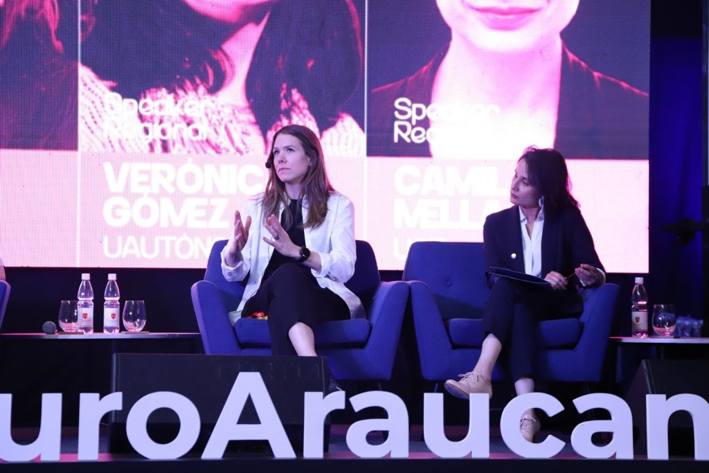 Tras su presentación, se realizó un panel de conversación con las académicas Verónica Gómez (Universidad Autónoma), Cecilia Mayorga (UFRO) y Camila Mella (UCT), quienes debatieron sobre los riesgos y desafíos que implica el fuerte impacto de las redes sociales en los vínculos humanos y la construcción de la identidad.