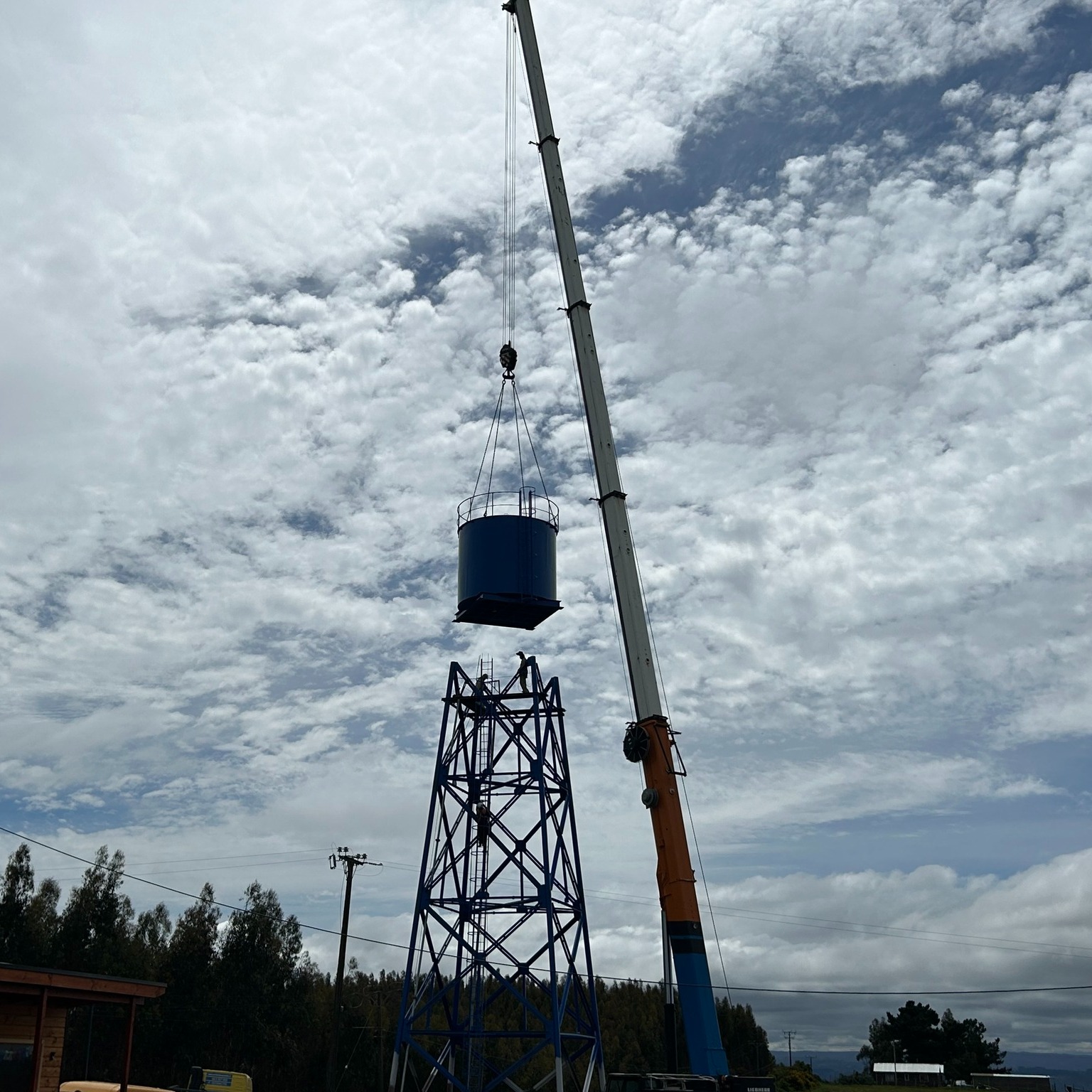 Durante la jornada se realizó la instalación de la torre metálica y el estanque, obras claves para asegurar el suministro de agua en la zona.